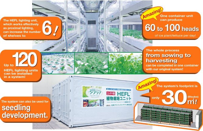 - ◆Possible for a streamlined cultivation from sowing to harvest within container spaces.